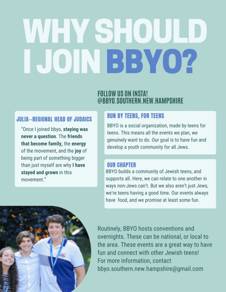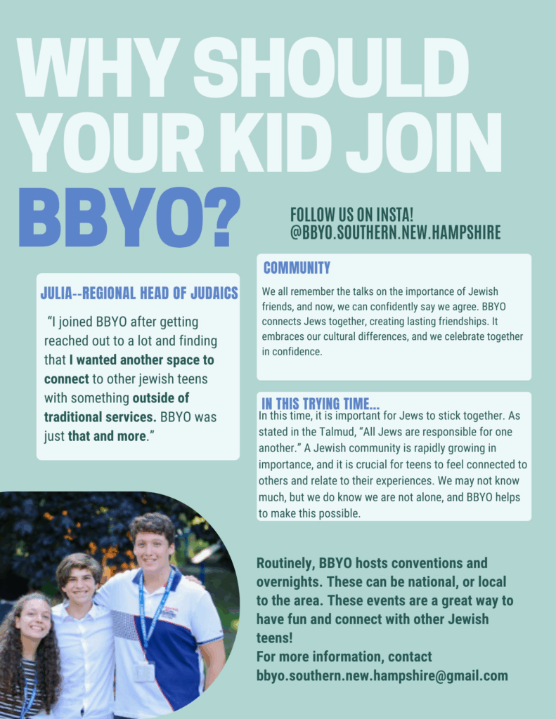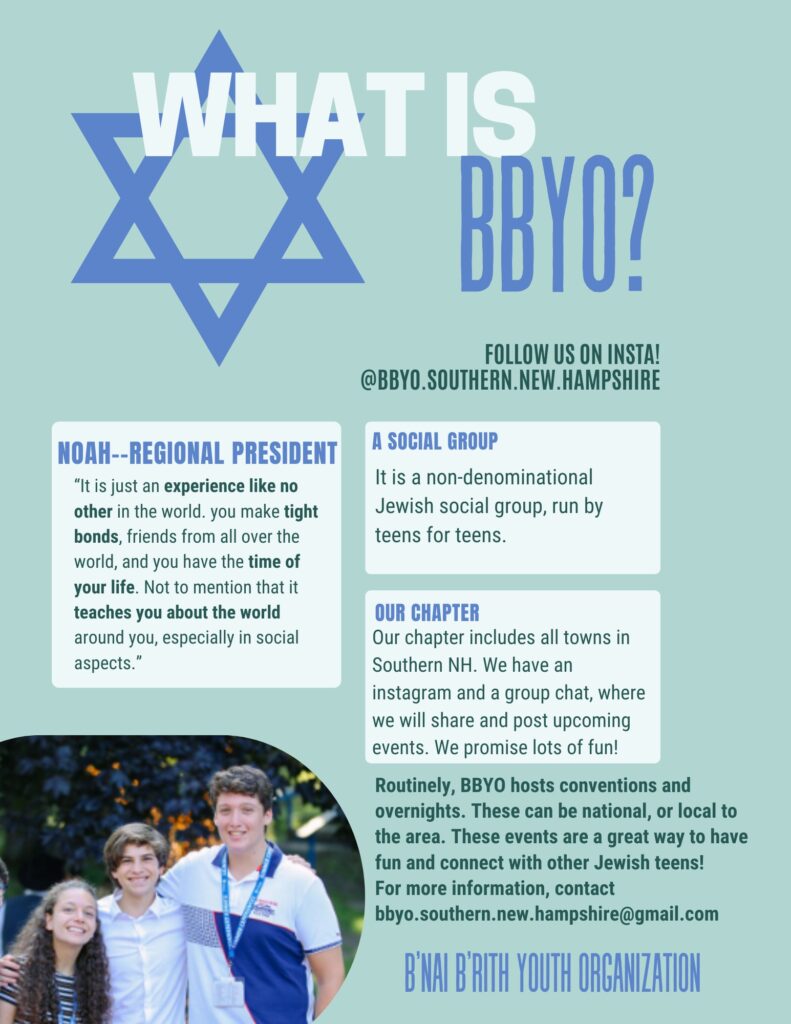 For more information email: bbyo.southern.new.hampshire@gmail.com